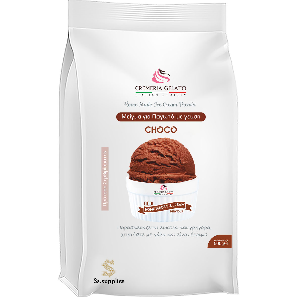 Premium μείγμα για την παρασκευή πλούσιου, σκληρού παγωτού με την αγαπημένη γεύση του μαύρου μπισκότου κακάο, χωρίς την προσθήκη ζάχαρης. Εξασφαλίζει επαγγελματική υφή και την τέλεια ισορροπία ανάμεσα στην κρέμα και το κακάο, χρησιμοποιώντας απλά ένα οικιακό μίξερ ή παγωτομηχανή.