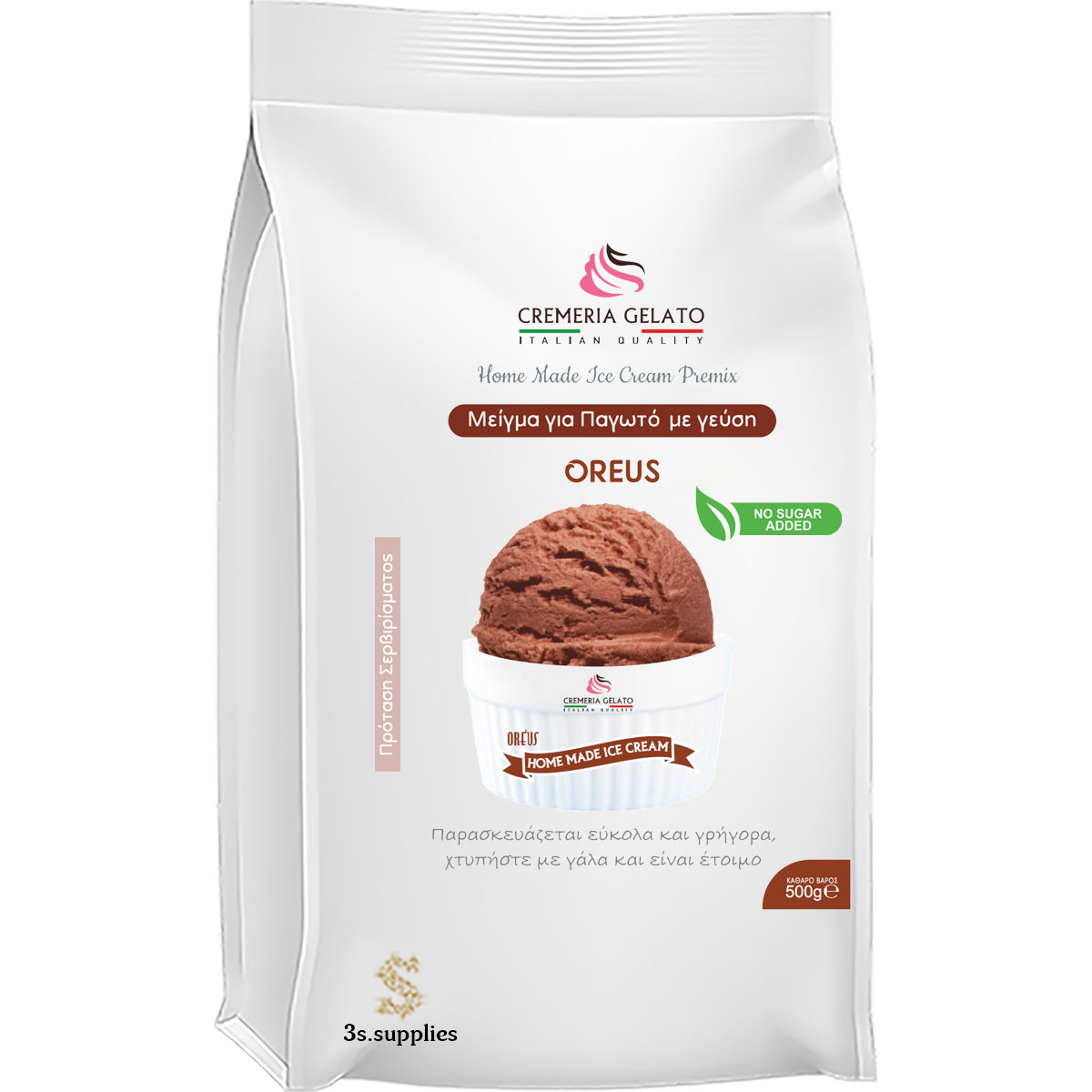 Το Home Made Ice Cream Oreus No Sugar Added φέρνει τον απόλυτο συνδυασμό "Cookies & Cream" στην κατάψυξή σας, στην πιο υγιεινή του εκδοχή. Σχεδιασμένο για να αναπαράγει την εμβληματική γεύση του μαύρου μπισκότου με την απαλή κρέμα βανίλιας, το μείγμα αυτό προσφέρει τη σταθερή δομή του "σκληρού" παγωτού (scoop ice cream). Είναι η ιδανική επιλογή για όσους λατρεύουν τις "τραγανές" γευστικές εμπειρίες αλλά αποφεύγουν τη ζάχαρη, διασφαλίζοντας ένα αποτέλεσμα που παραμένει βελούδινο και πλούσιο.