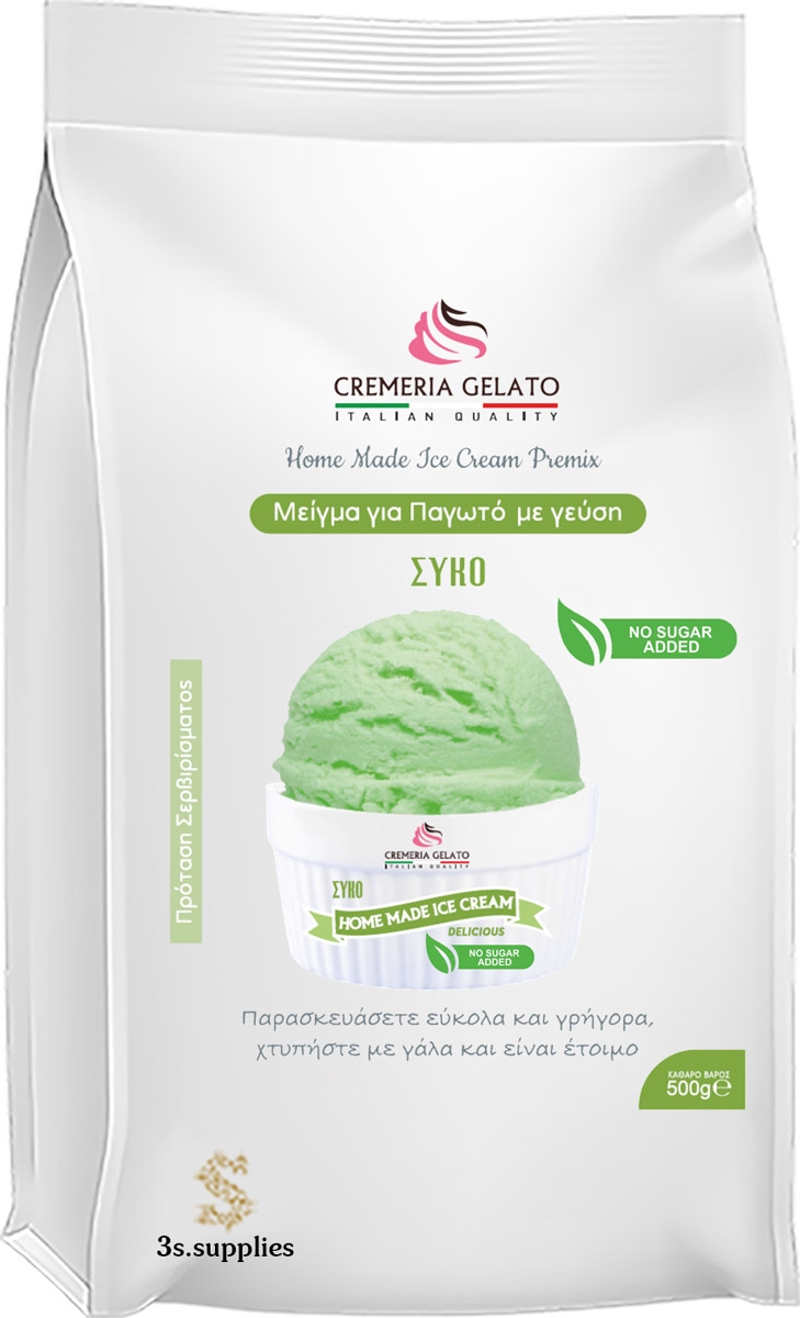 Mείγμα για την παραγωγή σκληρού παγωτού χωρίς ζάχαρη με γεύση σύκου σε συσκευασία των 500 γραμμαρίων, χωρίς παγωτομηχανή, με μίξερ.